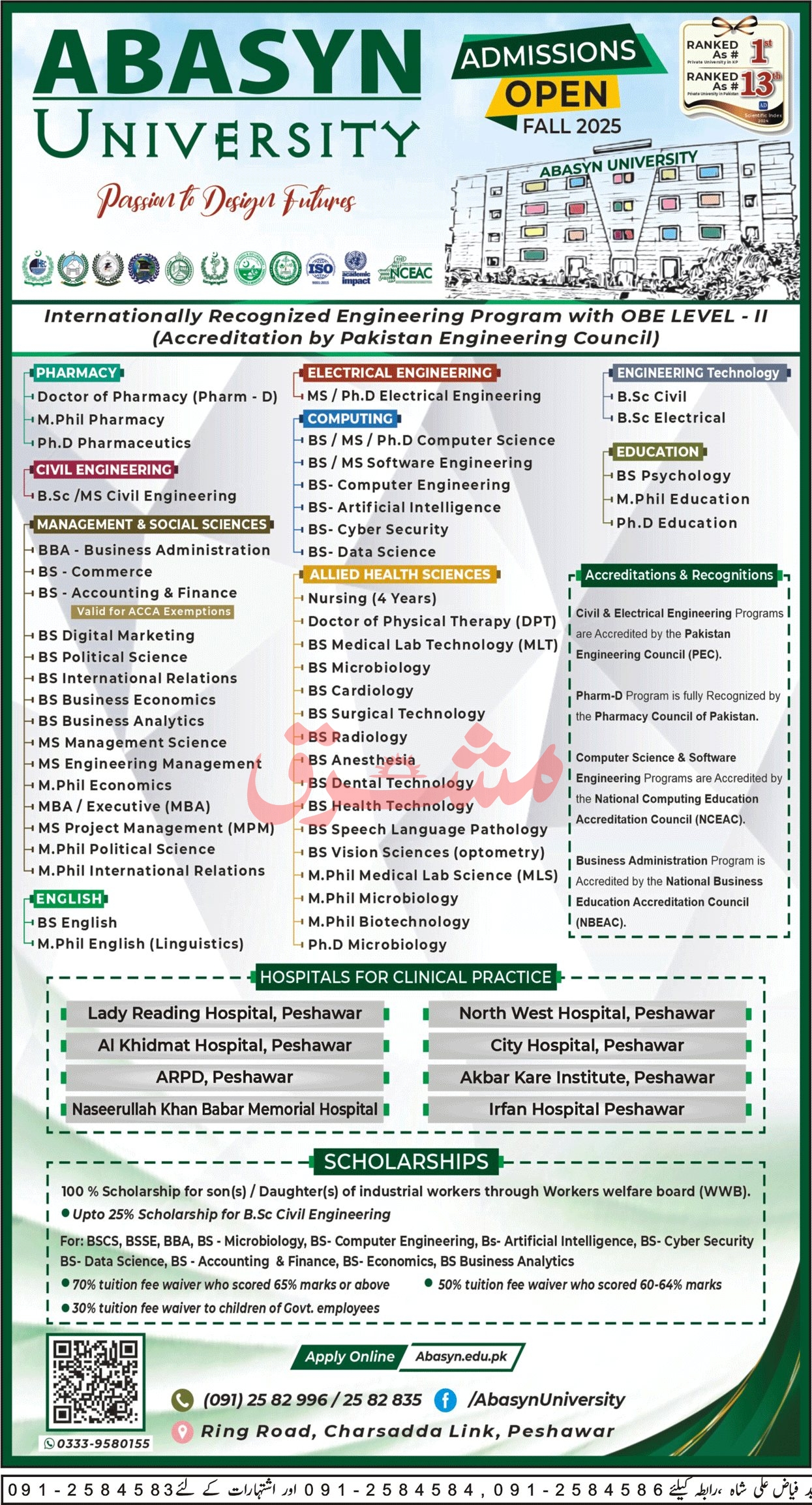 Admission Open in Abasyn University Peshawar | IndoPakWork