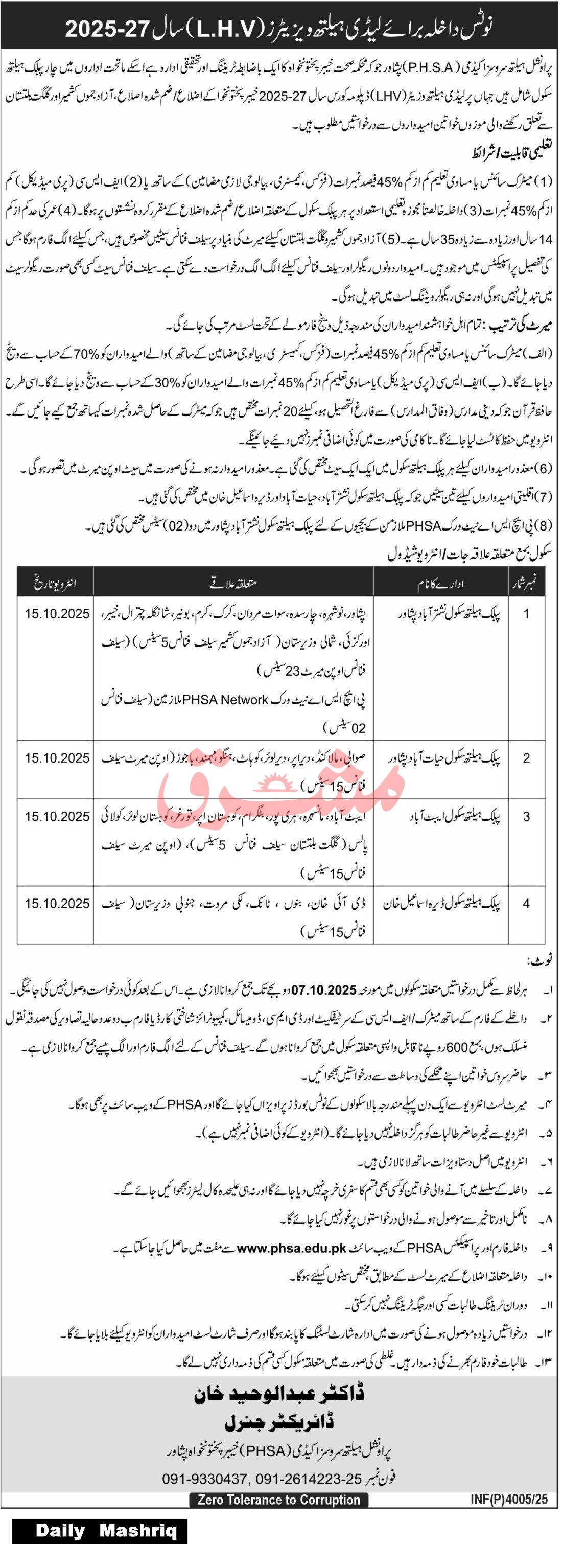 Admission Open in Provincial Heath Services Academy Peshawar