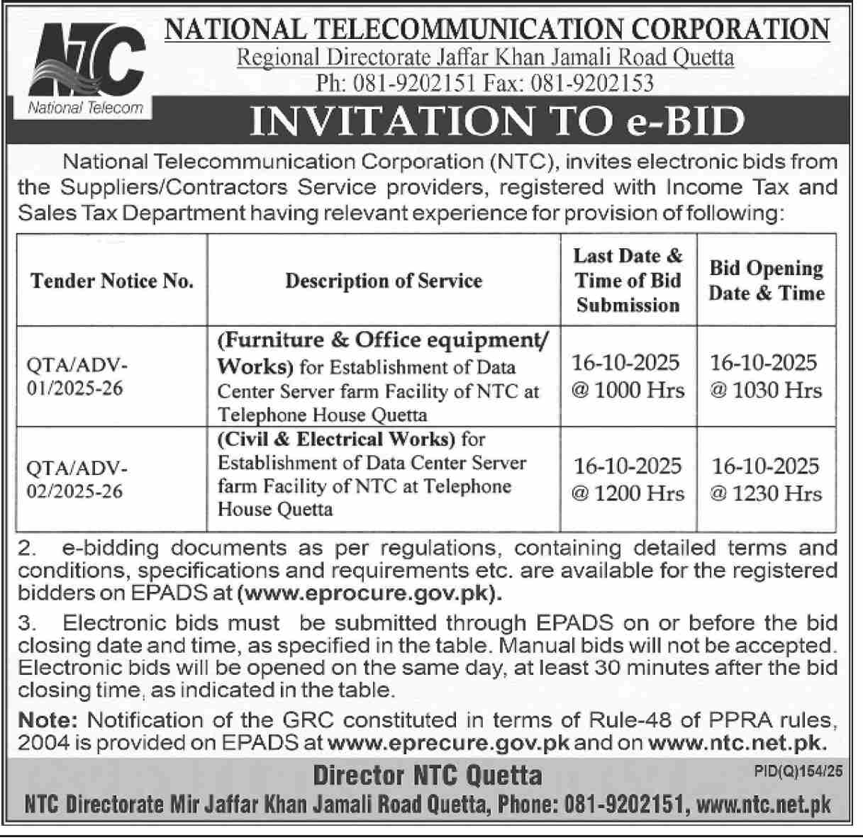 Oil & Gas Development Company Limited Islamabad Tender Notice