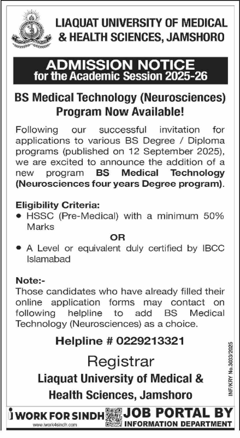 Admission Open in Liaqat University of Medical & Health Sciences Jamshoro
