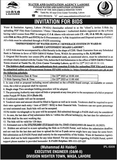 Pakistan Ordnance Factories Wah Cantt Tender Notice