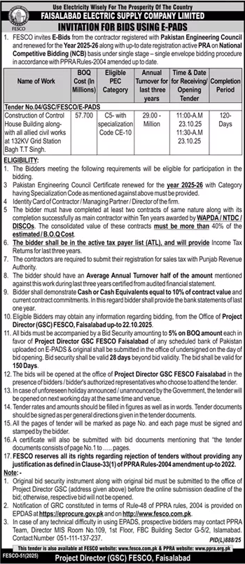 e-Pak Acquisition Disposal System Lahore Tender Notice