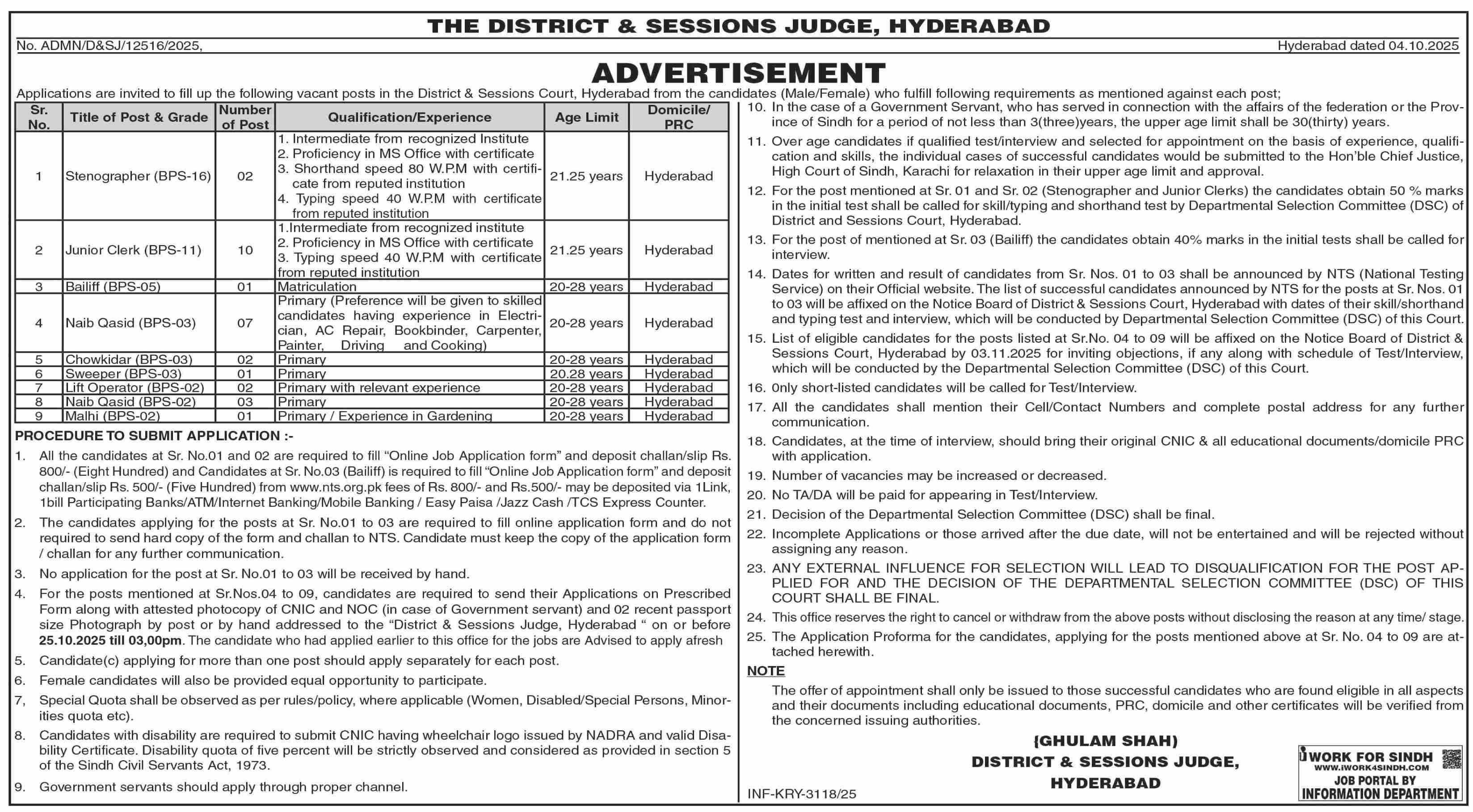 District & Session Court Hyderabad Jobs