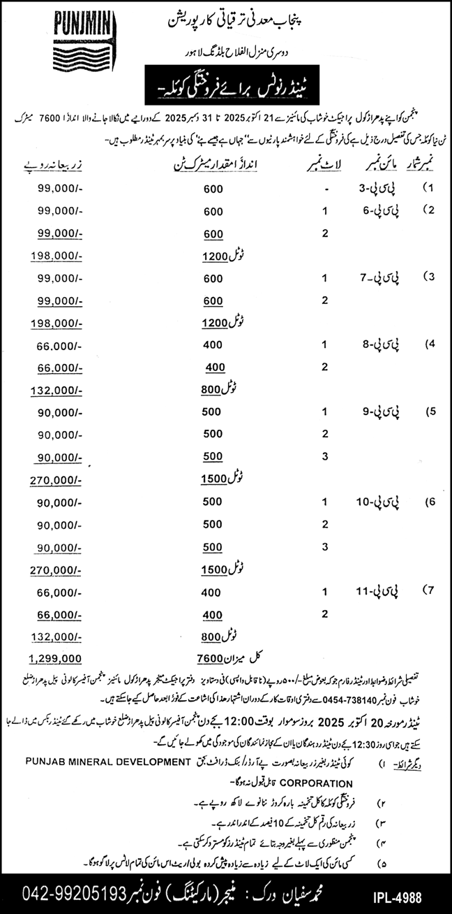 Punjab Mineral Development Corporation Lahore Tender Notice